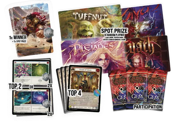 Tous les participants reçoivent un booster, un booster promo et une carte promotionnelle.